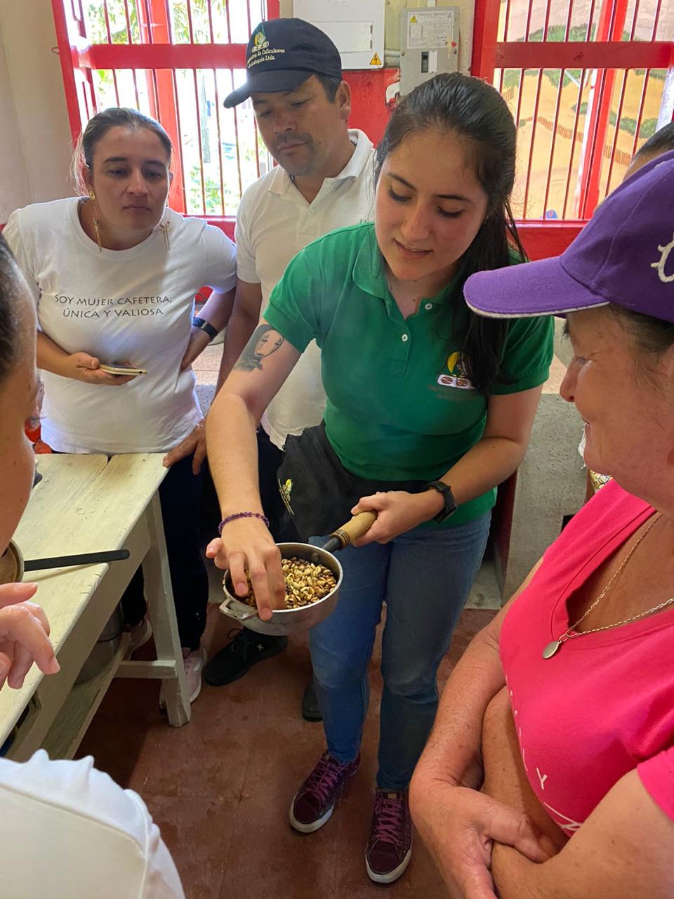 Realizamos un taller de equidad de genero 👩‍🌾🍒☕ con mujeres asociadas y esposas de asociados en la vereda Morrón del municipio de Abejorral, donde aparte de un trabajo de liderazgo y apropiación de su rol en la caficultura, les enseñamos como tostar su café, este es un taller enfocado en promover el consumo de café de calidad.