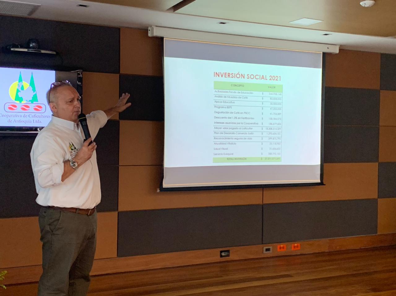 Felicitaciones a todos los Delegados, asociados, directivos y empleados del Comité Departamental de Cafeteros y Cooperativa de Caficultores de Antioquia por el éxito de esta asamblea que enmarca derroteros de progreso, participación, integración y solidez cooperativa, en estas regiones cafeteras que ven cada vez más la importancia de fortalecer sus instituciones cafeteras y garantizar así la prestación de ese importante servicio como es la comercialización de su café con valor agregado para beneficio de sus familias.